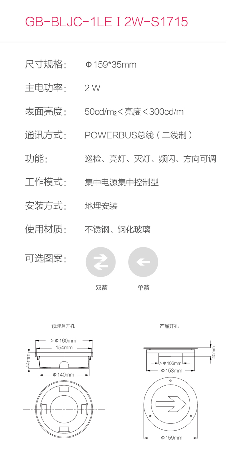 產(chǎn)品型號(hào):S1715主電功率:2W安裝方式:地埋安裝防護(hù)等級(jí):IP30產(chǎn)品尺寸:Φ159*35mm