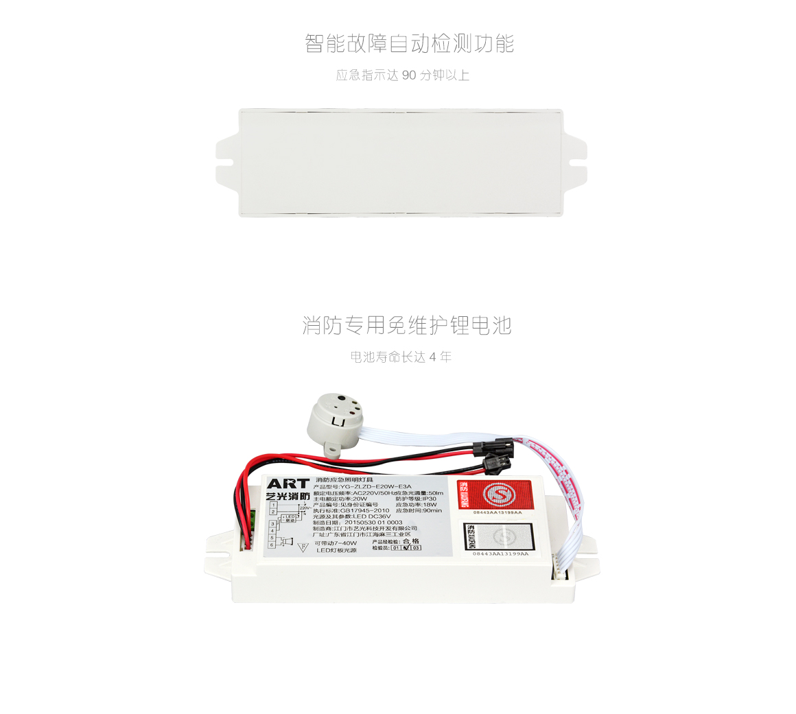 產品型號: E3A可驅動燈具:(5-11W)節(jié)能燈,(3-5W)LED筒燈,(3-5W)LED射燈應急時間: ≥90分鐘( 超長應急)電池類型: 鋰電池ZD3.7V 1500mAh產品尺寸: 178*54*25mm執(zhí)行標準: GB17945-2010新國標