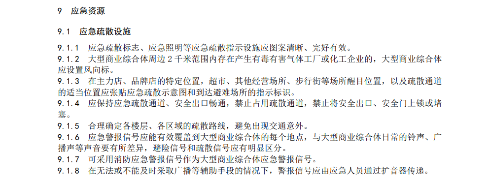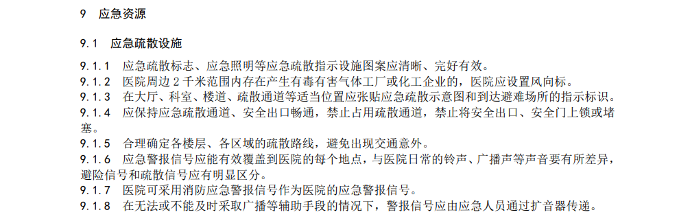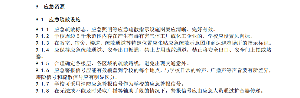 3項(xiàng)團(tuán)體標(biāo)準(zhǔn)分別對(duì)中小學(xué)校、醫(yī)院、大型商業(yè)綜合體的應(yīng)急組織、管理制度、物資配備、應(yīng)急預(yù)案、應(yīng)急演練、培訓(xùn)與宣教、應(yīng)急資源、監(jiān)測(cè)預(yù)警與應(yīng)急響應(yīng)、事后恢復(fù)等方面進(jìn)行了全面規(guī)范。其中,針對(duì)應(yīng)急疏散設(shè)施有規(guī)定如下: