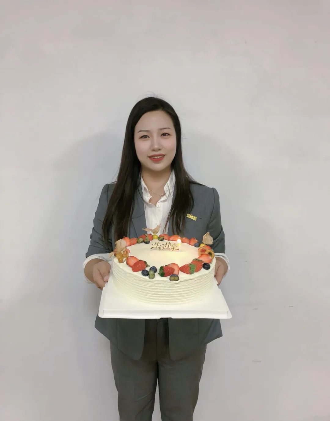 公司為生日伙伴呈上了精美的蛋糕和別出心裁的禮物。