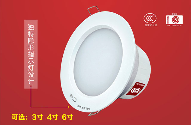 藝光消防應急筒燈1612款燈罩顏色為白色,質感光滑。另外也具有一塊半透明的罩板,用來增強光照效果。此款消防應急燈具有3寸、4寸、6寸三種尺寸可選,增加了在各種面積場所的適用性。