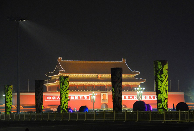 為了迎接今年的國慶,9月25日晚,北京天安門廣場進行了景觀照明調試。具體包括對天安門廣場東西側綠地的立體花柱、花球進行了調試,此外也調試了其它景觀照明部分。