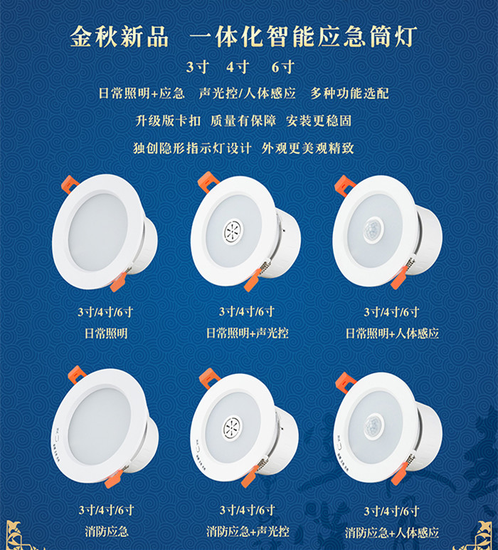 光之傳說(shuō)一體化智能應(yīng)急筒燈外觀精美、質(zhì)量高端、尺寸多樣(3寸,4寸、6寸)。