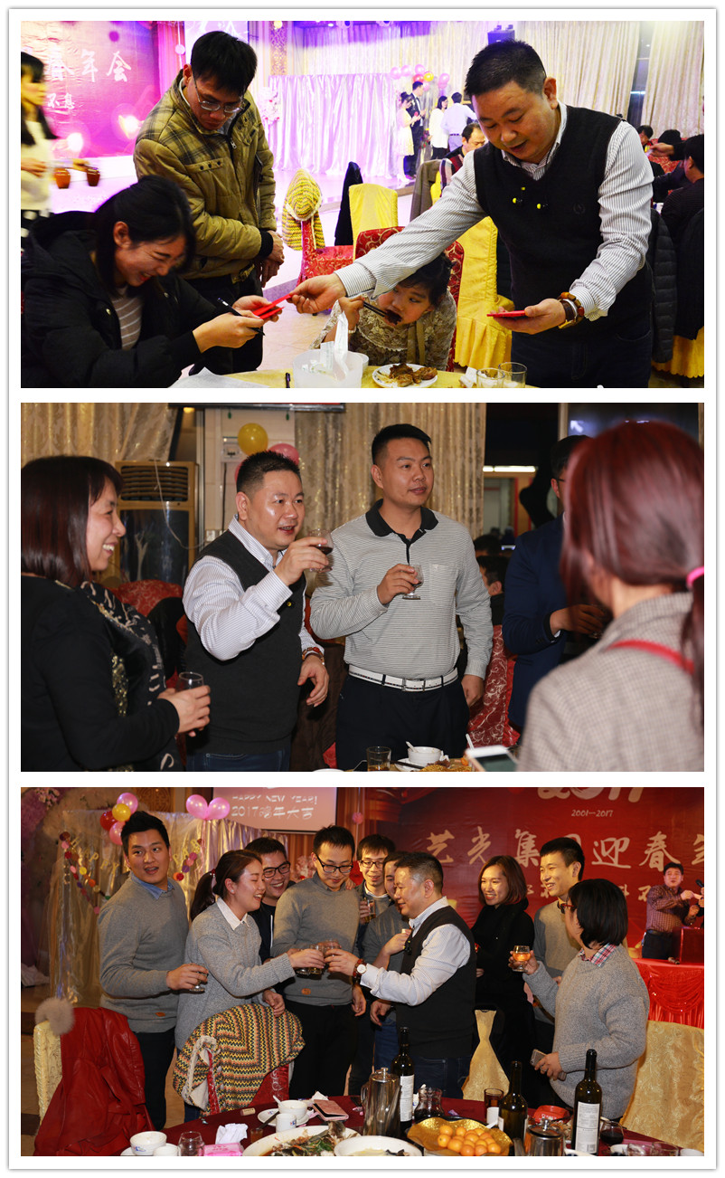 表演結(jié)束后,年會正式進入晚宴環(huán)節(jié),張總為藝光同事們派發(fā)新年紅包并與大家碰杯,相互祝福。