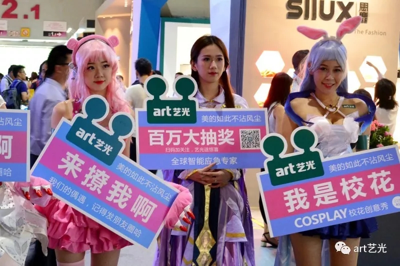 為配合本次展會活動,藝光為行業(yè)精心策劃了“藝光cosplay?;▌?chuàng)意秀”“百萬大抽獎”活動,四大美女?;R助陣展會,大玩cosplay創(chuàng)意,令藝光品牌在展會上人氣大增,燃爆照明展。
